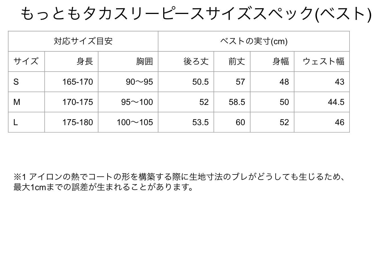 例) 購入サイズに着丈プラス3cm