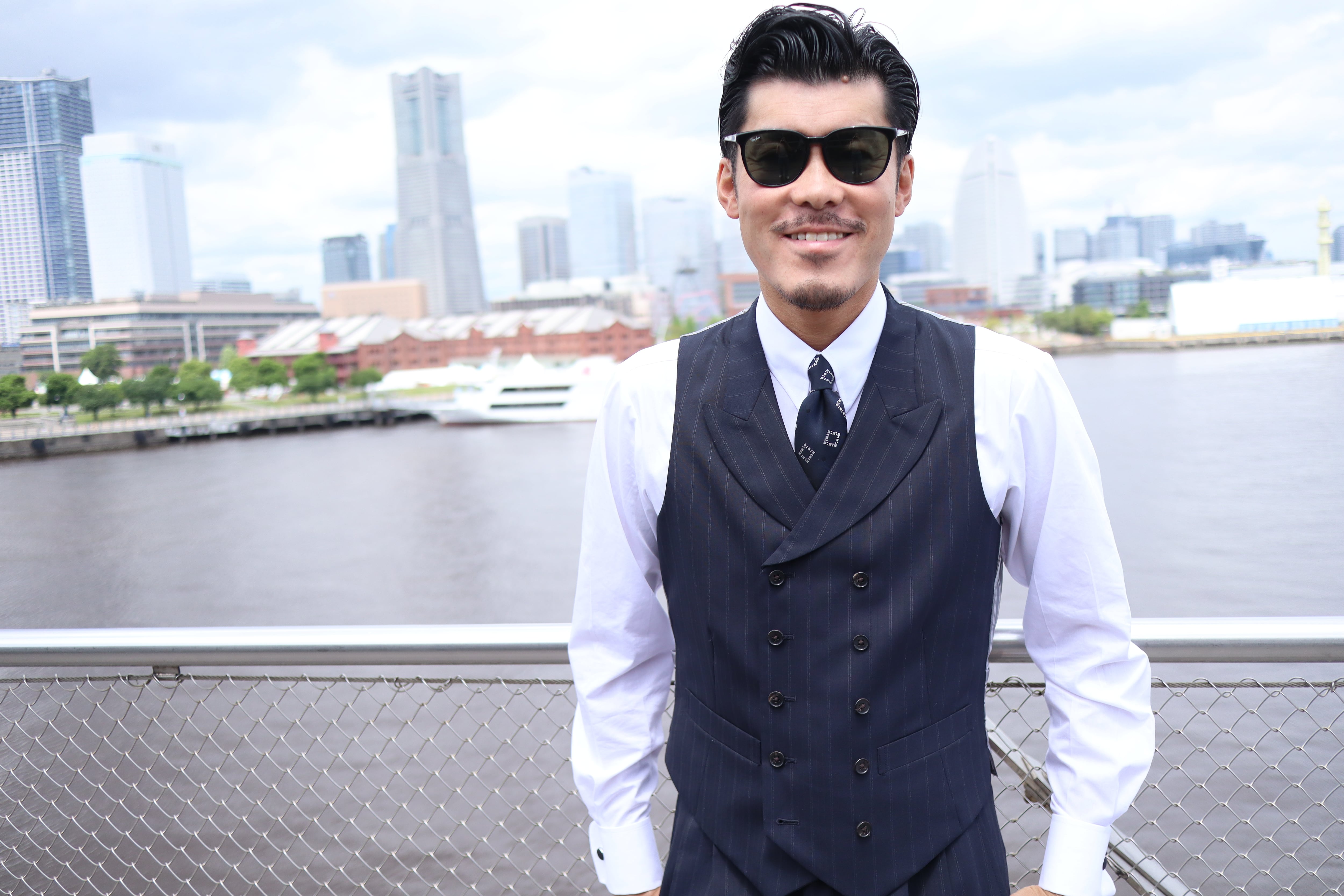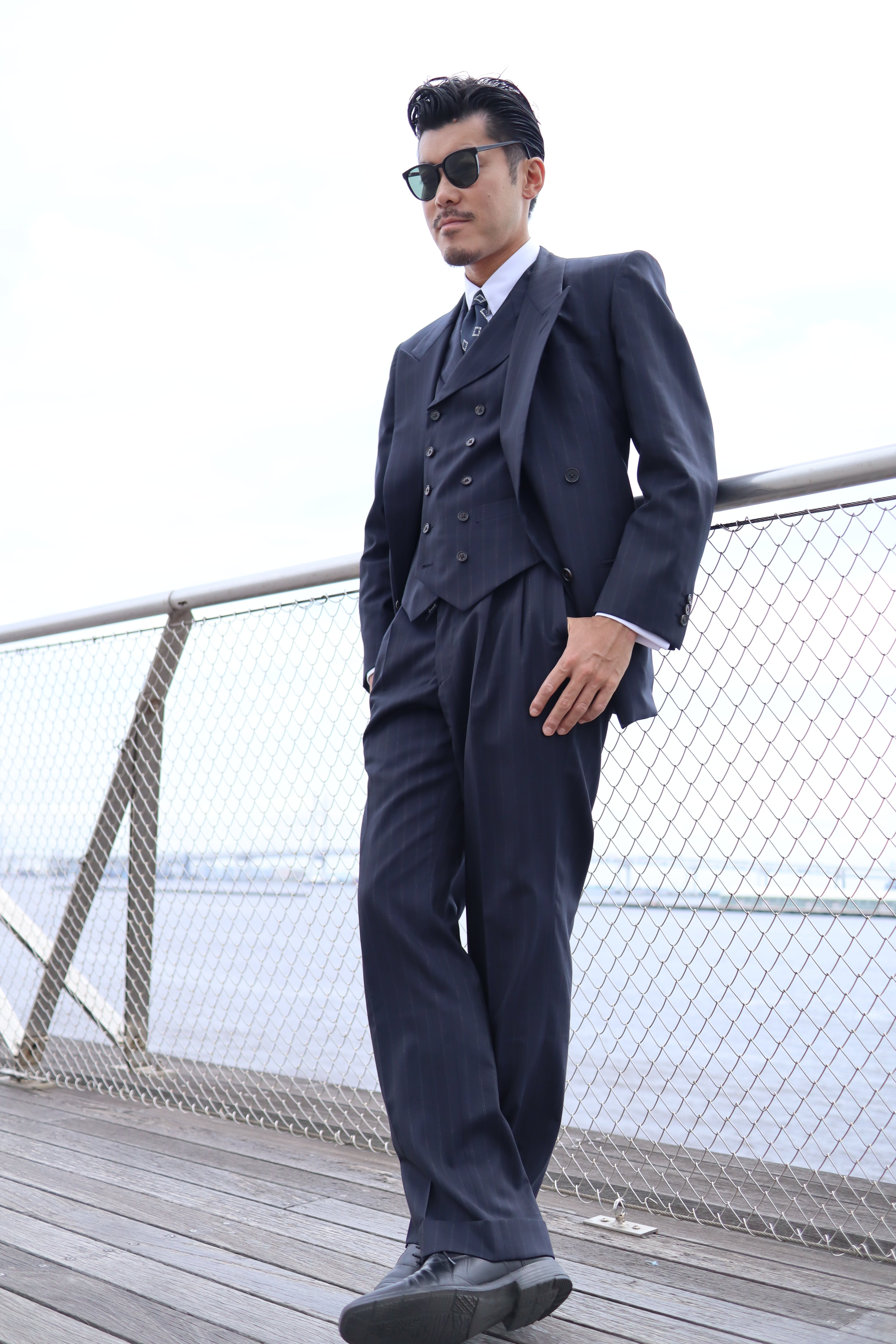 もっとも タカ ダブルストライプスリーピーススーツ 10ボタンピークドラペルベスト 受注生産品