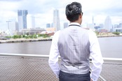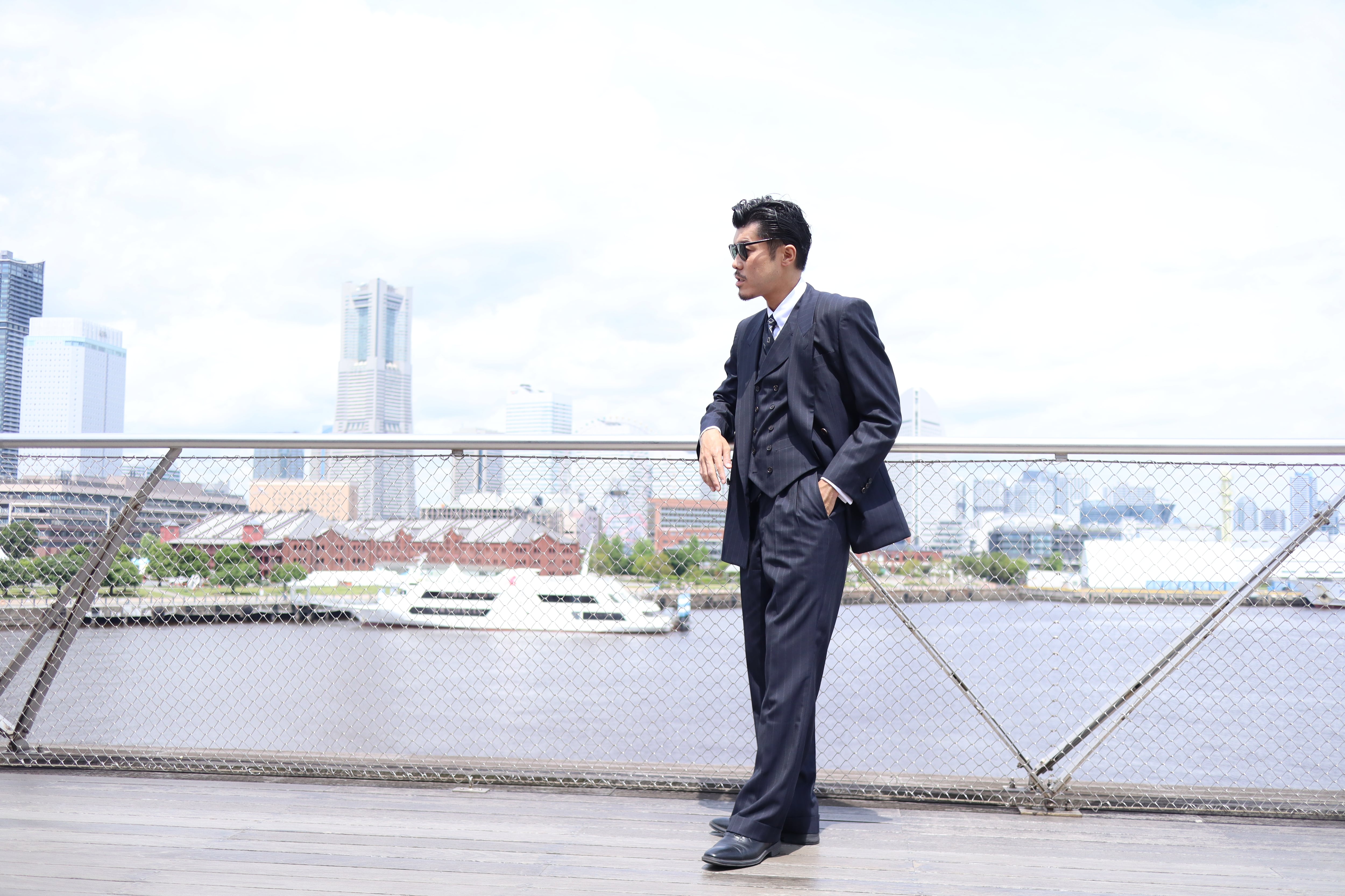 適度なゆとりによるドレープ感が美しく、ダンディズムを感じるもっとものタカをイメージしたスリーピーススーツです。