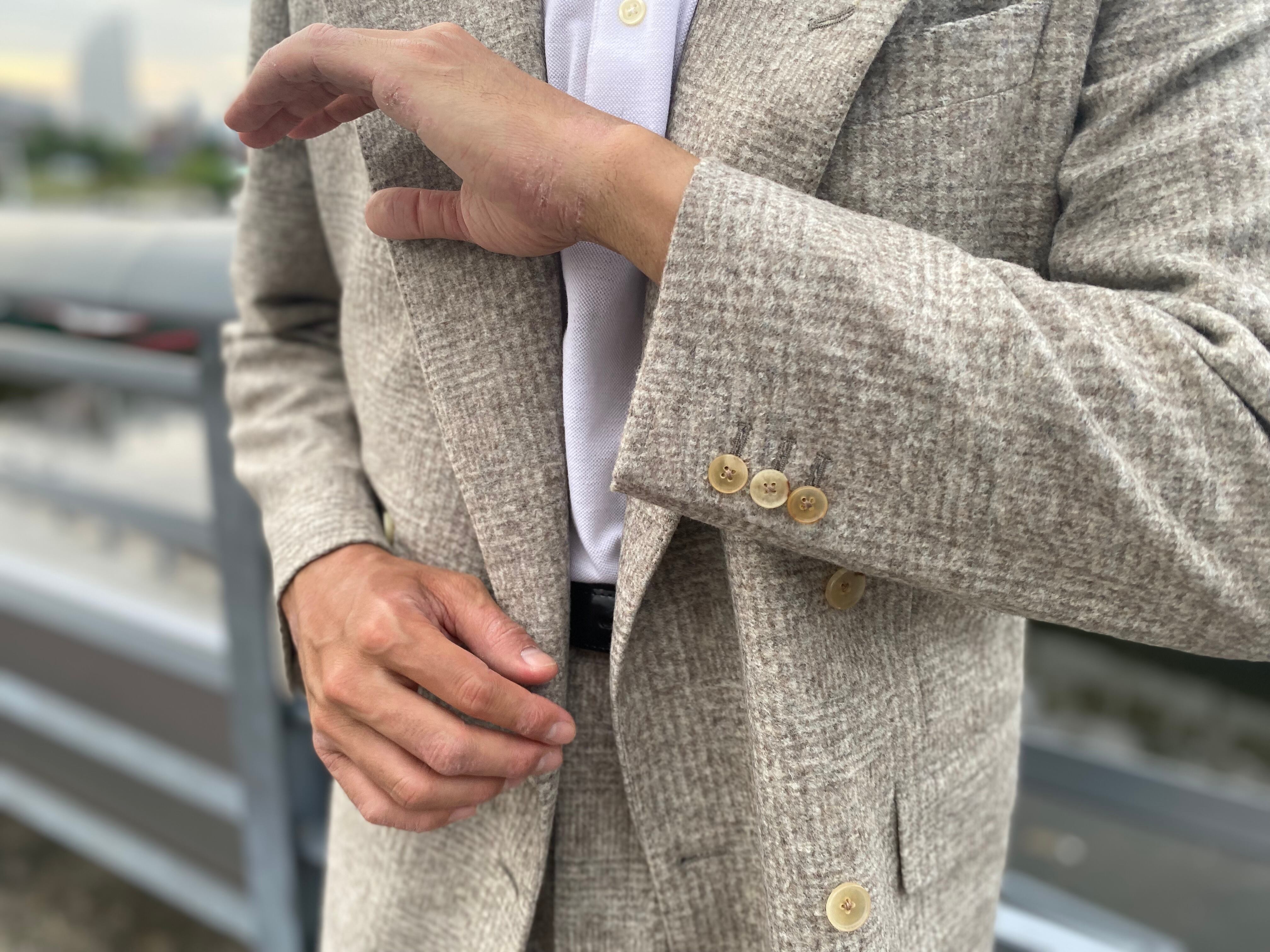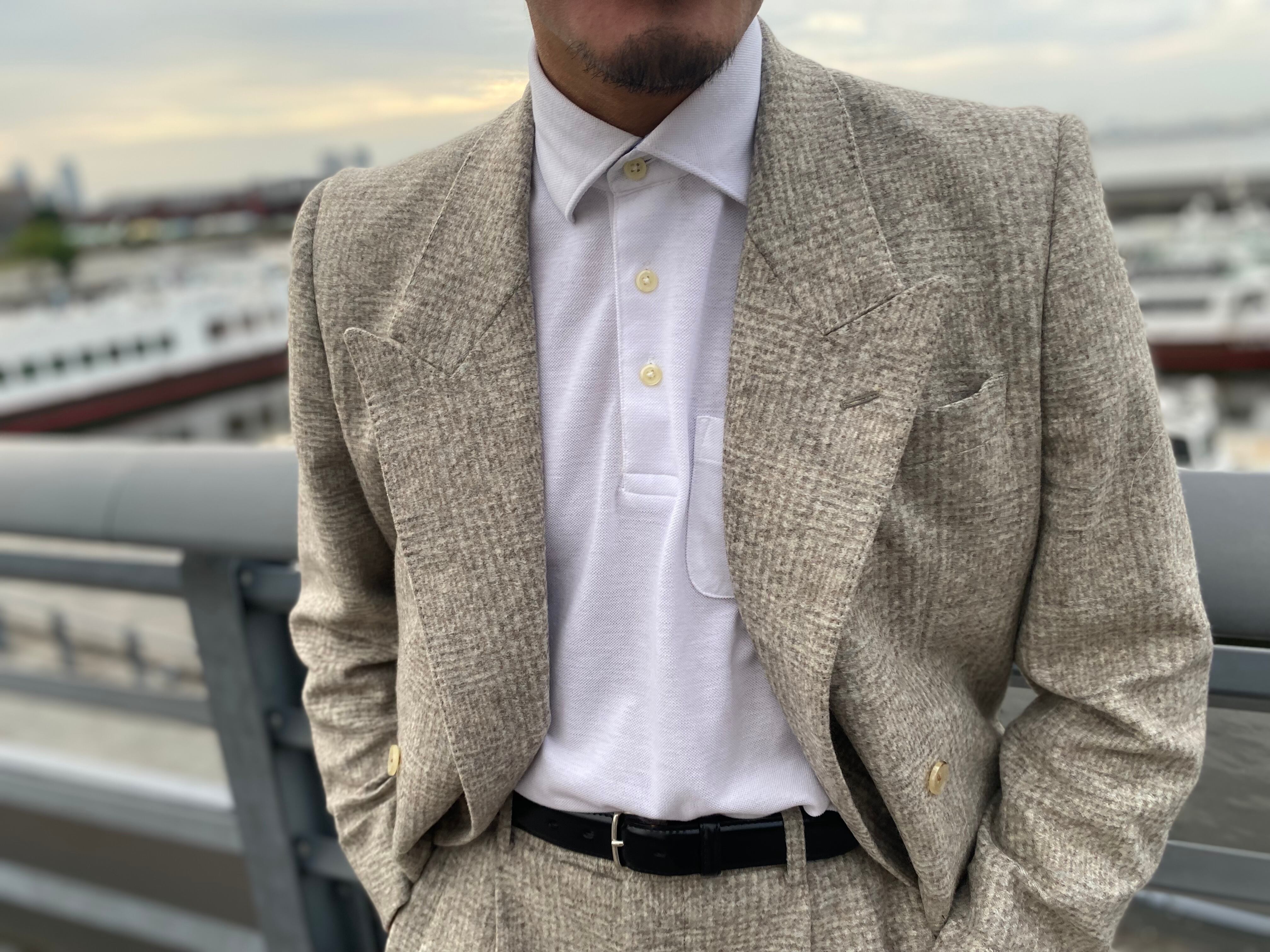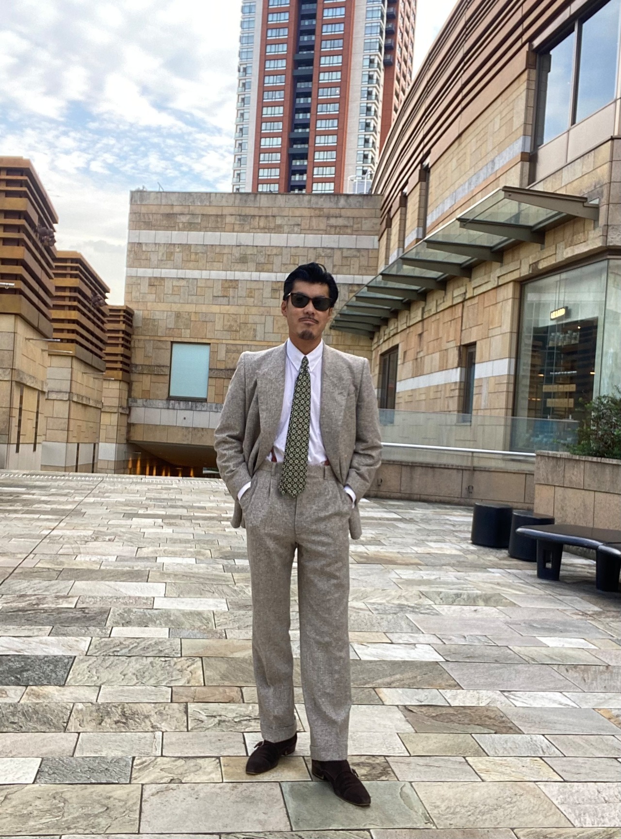 クラシックさを存分に味わえるジャケットのゴージの低さ・肩の造りで、現代で着用しても格好良いボリュームの肩パットを入れ、無骨さのある雰囲気に。