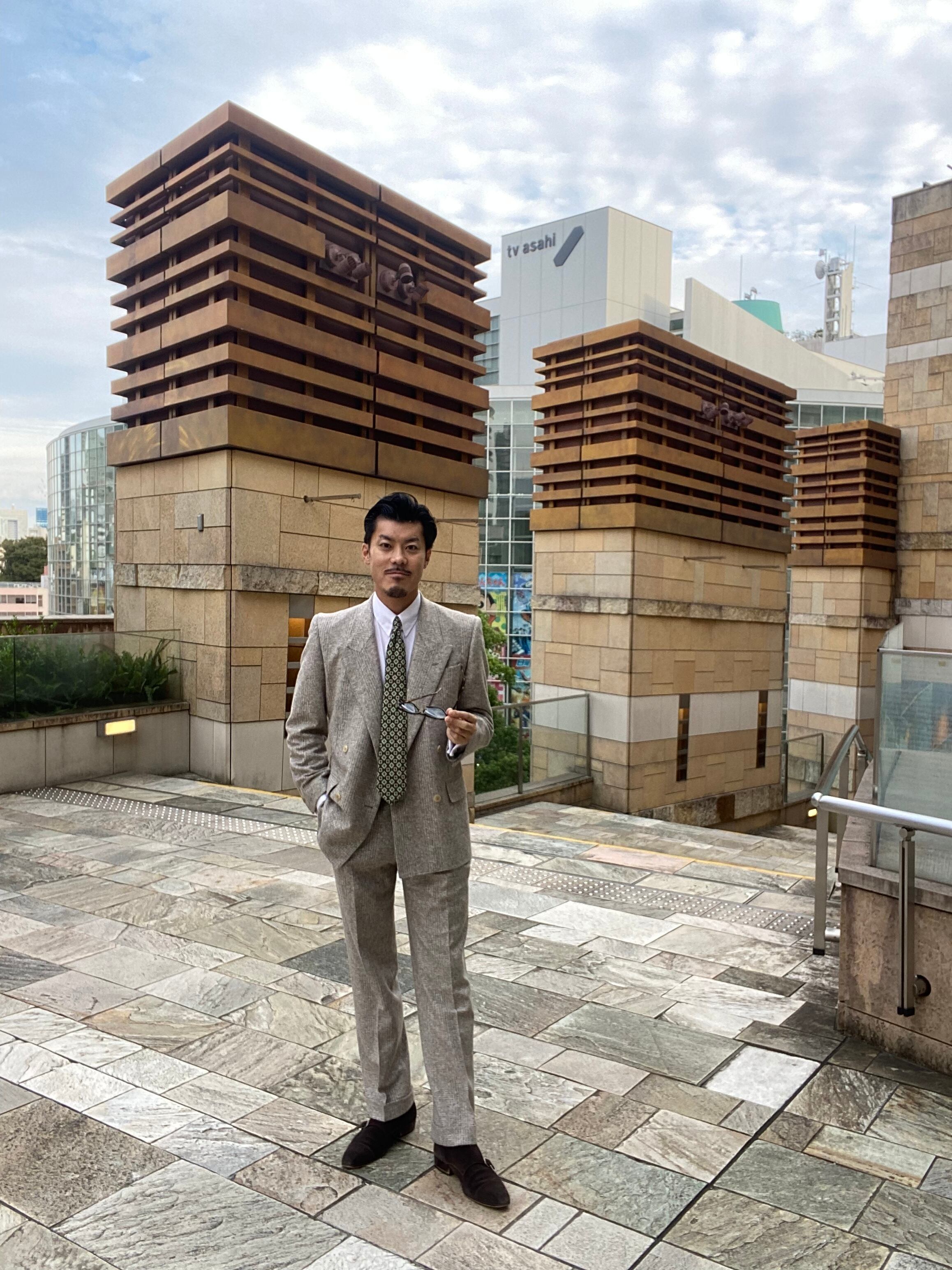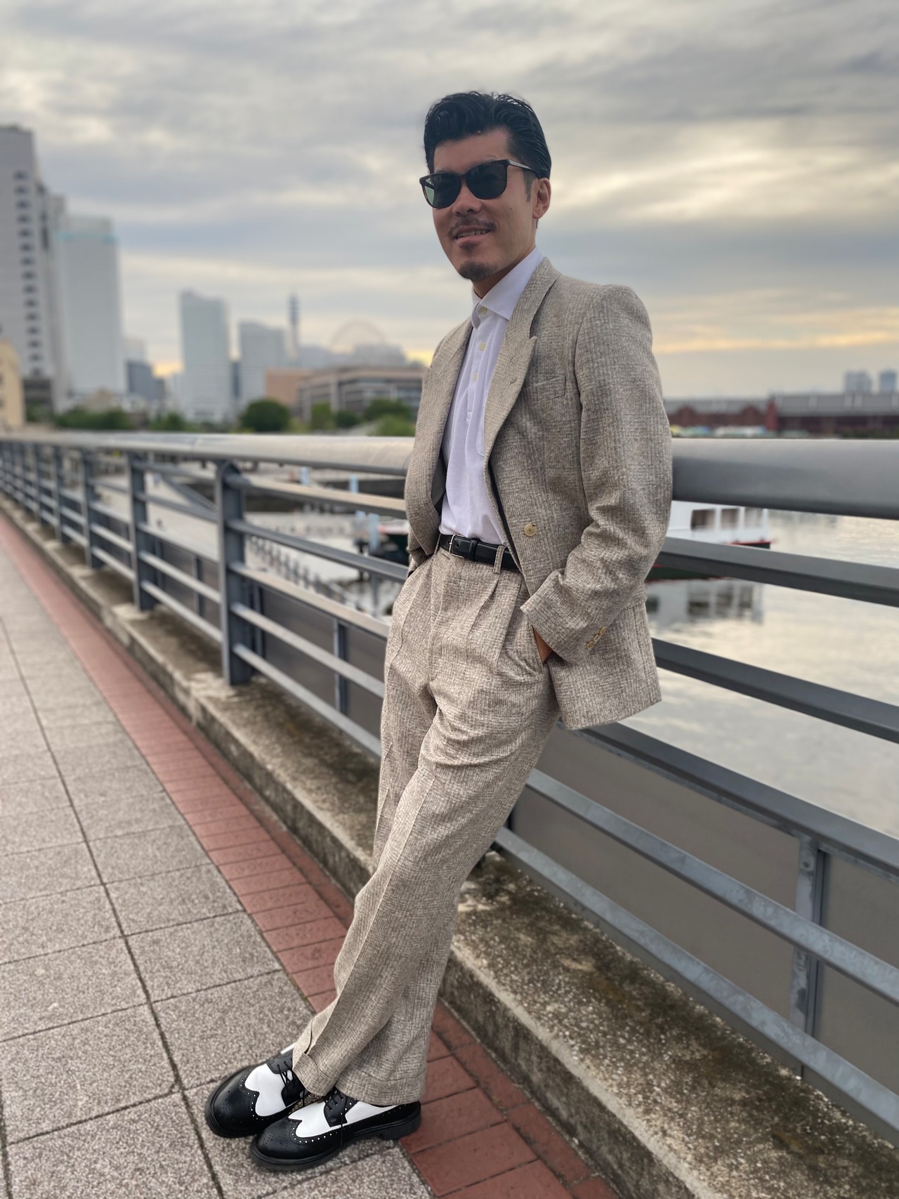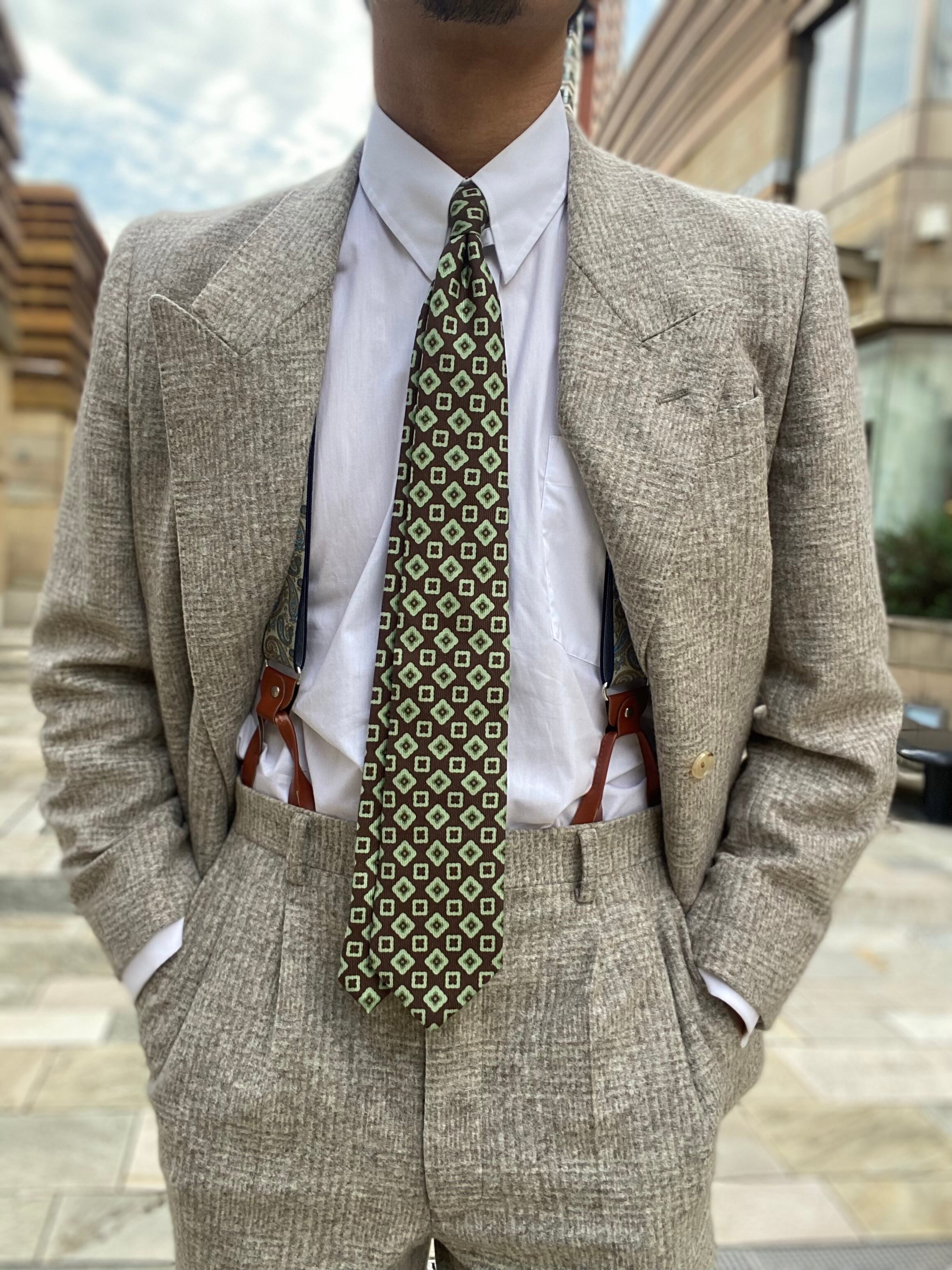 クラシックさを存分に味わえるジャケットのゴージの低さ・肩の造りで、現代で着用しても格好良いボリュームの肩パットを入れ、無骨さのある雰囲気に。