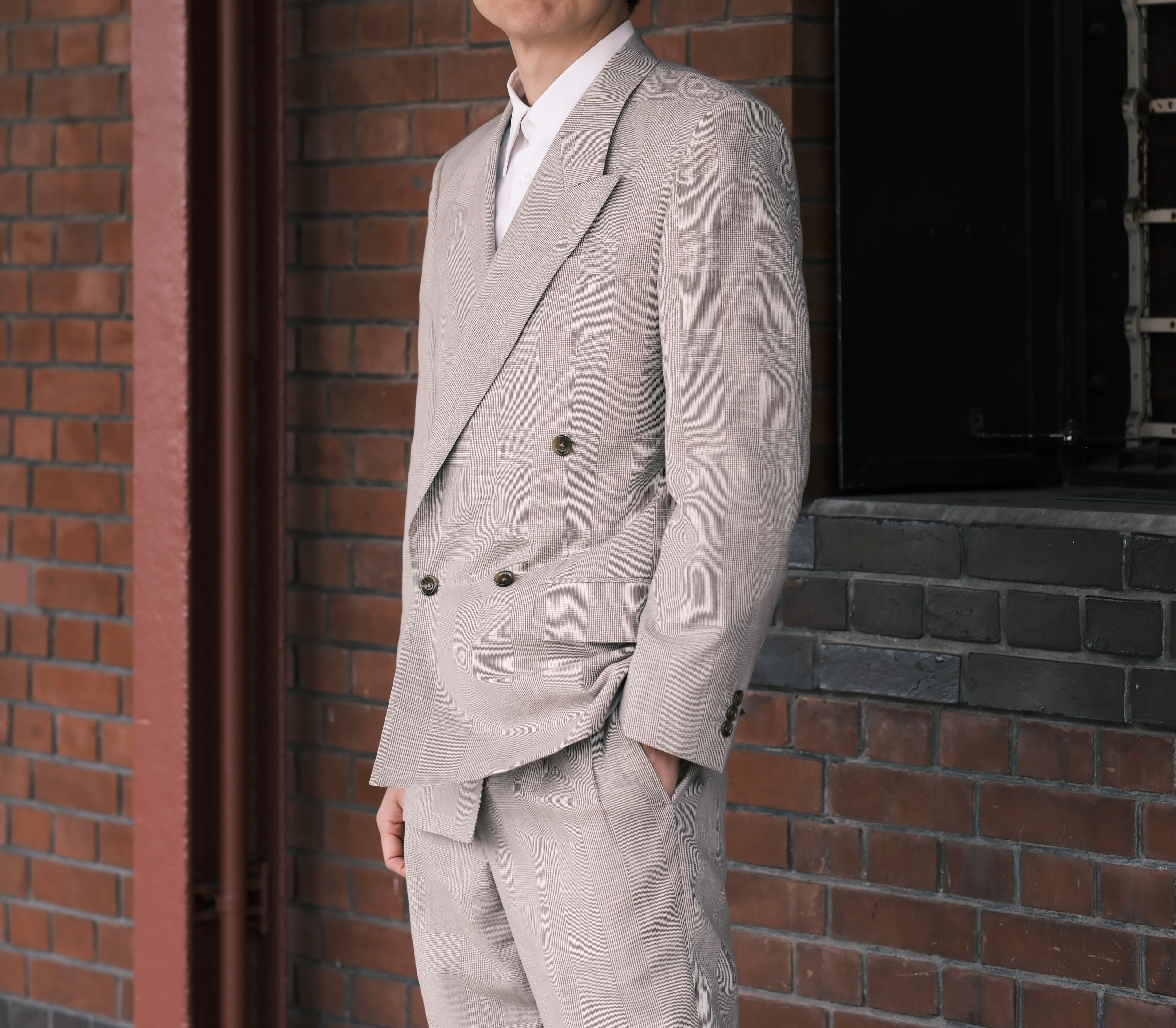 クラシックさを存分に味わえるジャケットのゴージの低さ・肩の造りで、現代で着用しても格好良いボリュームの肩パットを入れ、無骨さのある雰囲気に。