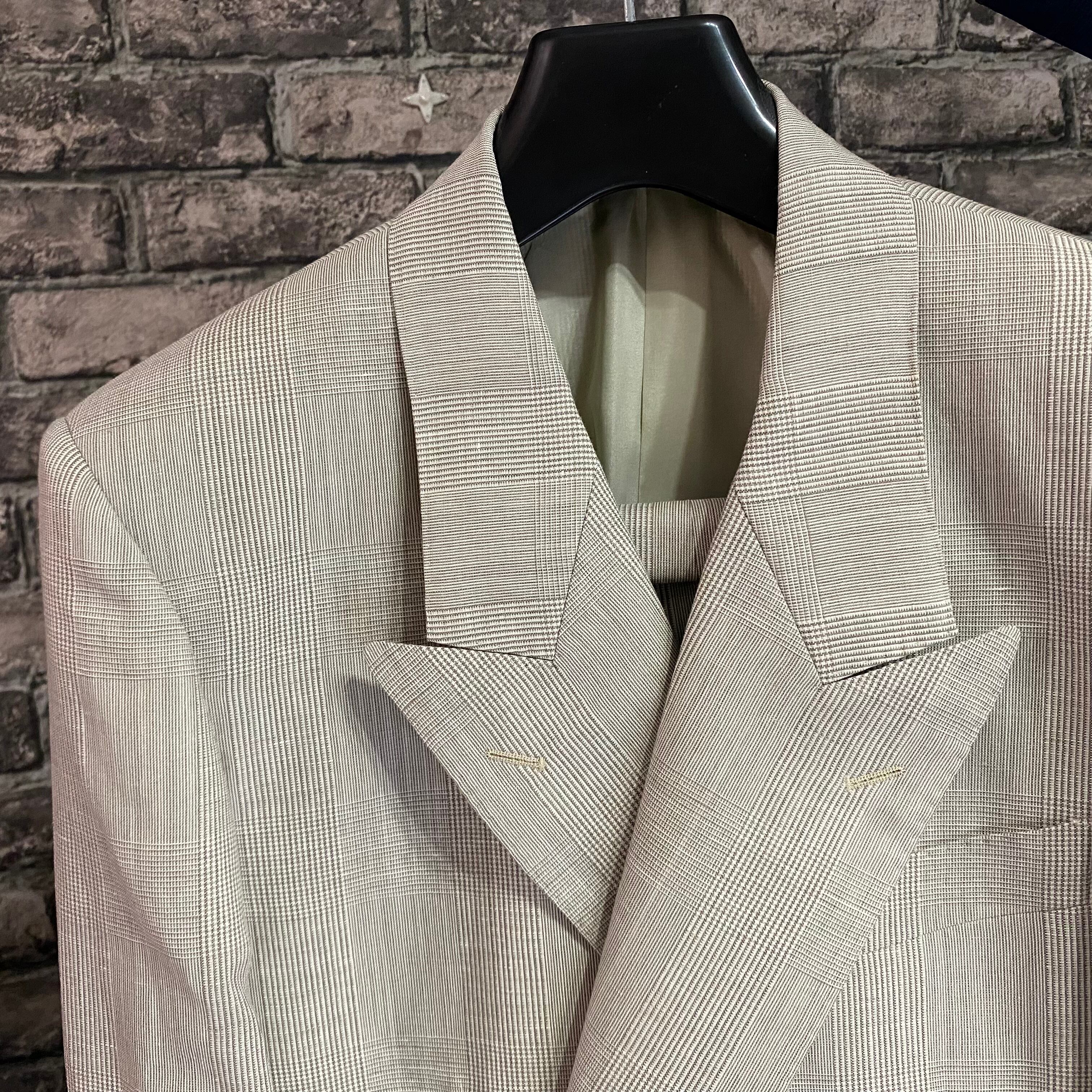 2代目 またまた タカ ベージュチェックダブルスーツ ダブル ツータック 受注生産品