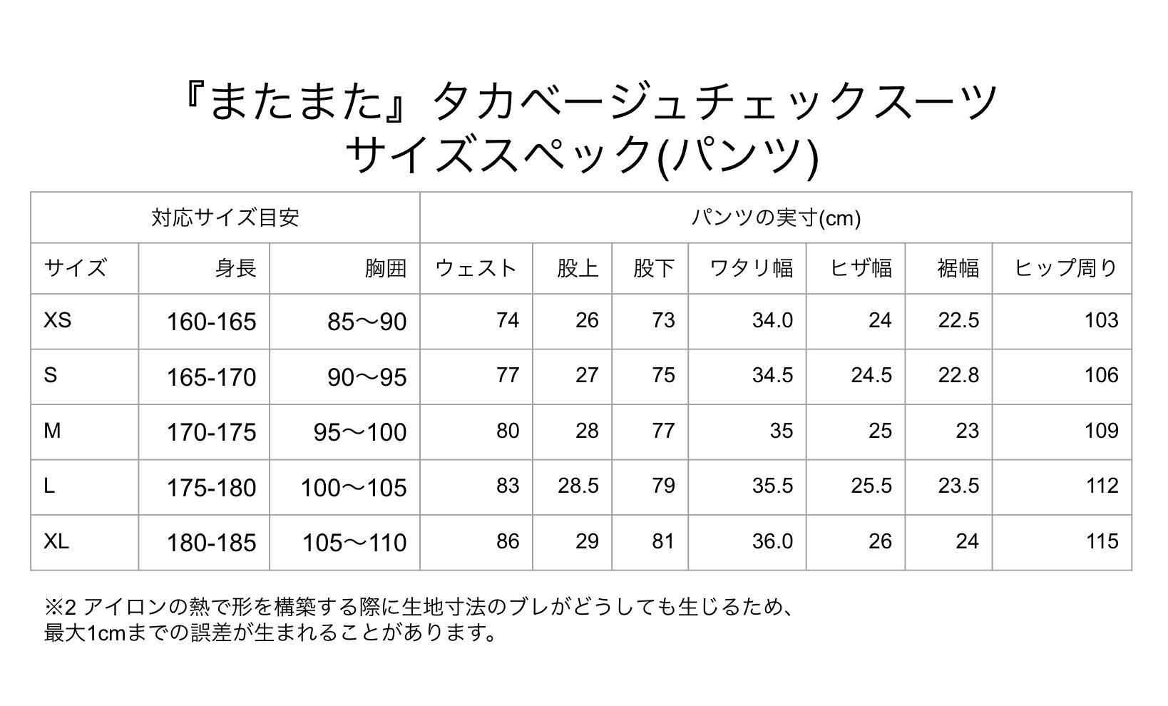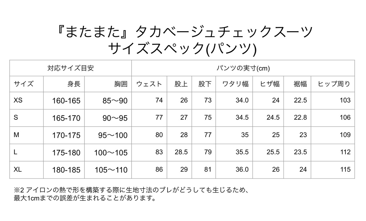 ※持込オーダーは持ち込んだスーツと同じ寸法で仕上げさせていただきます。