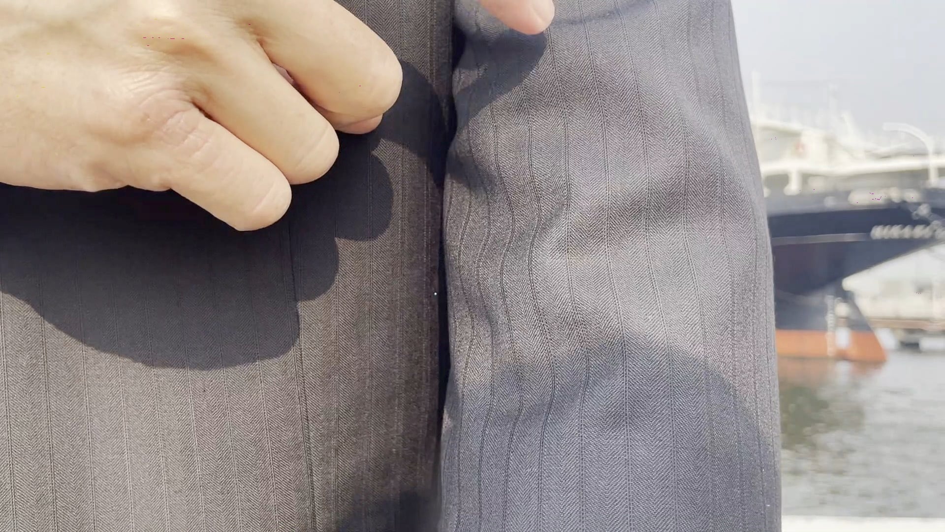 1つ目はヘリンボーンのシャドーストライプの表情です。あの頃の質感に近く、クラシックを味わえます。