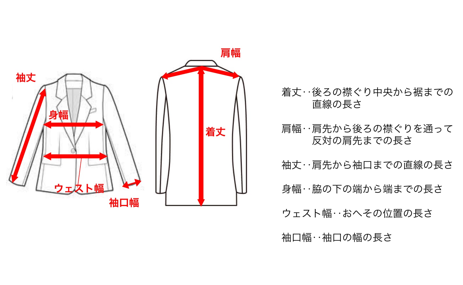 例) 購入サイズに着丈プラス3cm