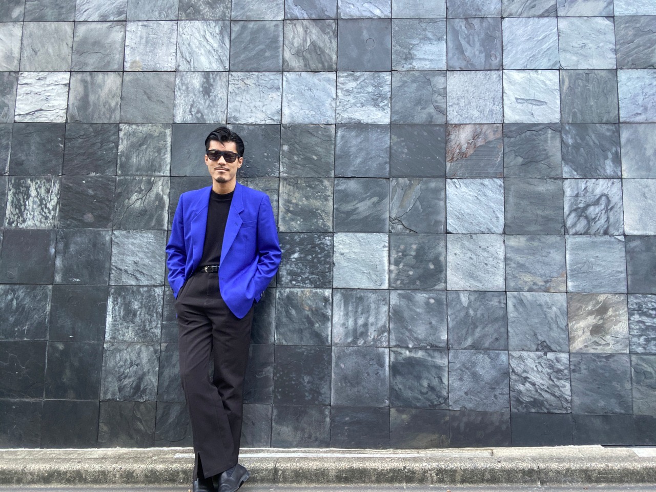 発色の綺麗なブルーで室内に入るとどこかパープルを感じる、ハリコシがありながらしなやかな生地が特徴です。