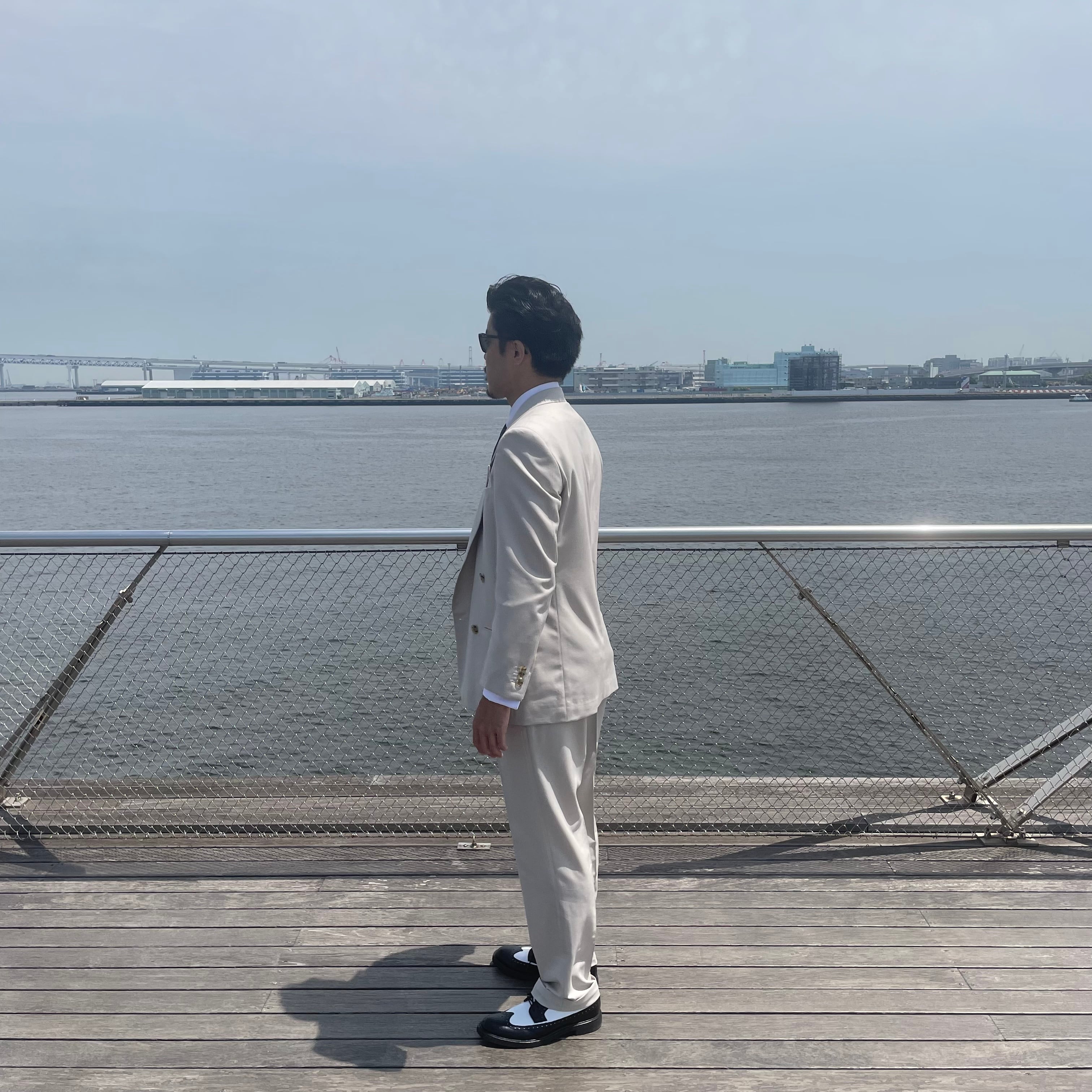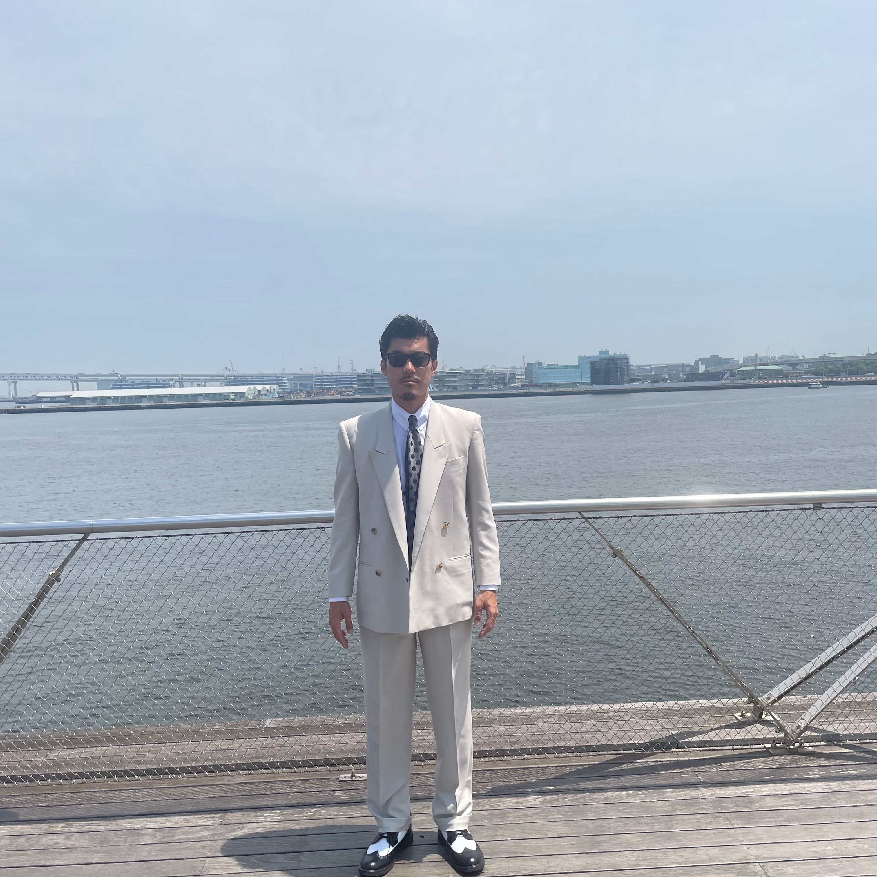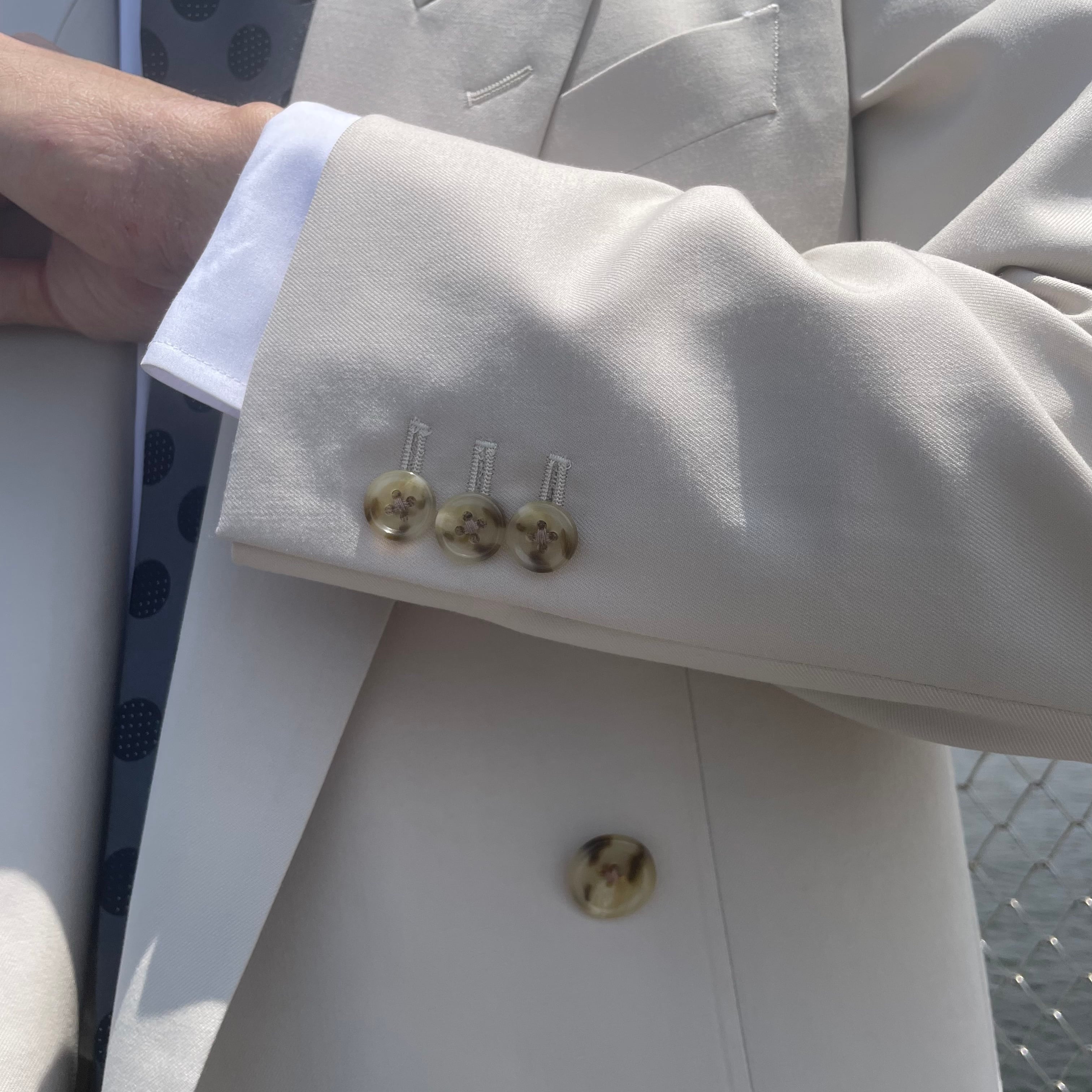 もっとものユージのオフベージュのダブルスーツを当時の型から起こしたものです。