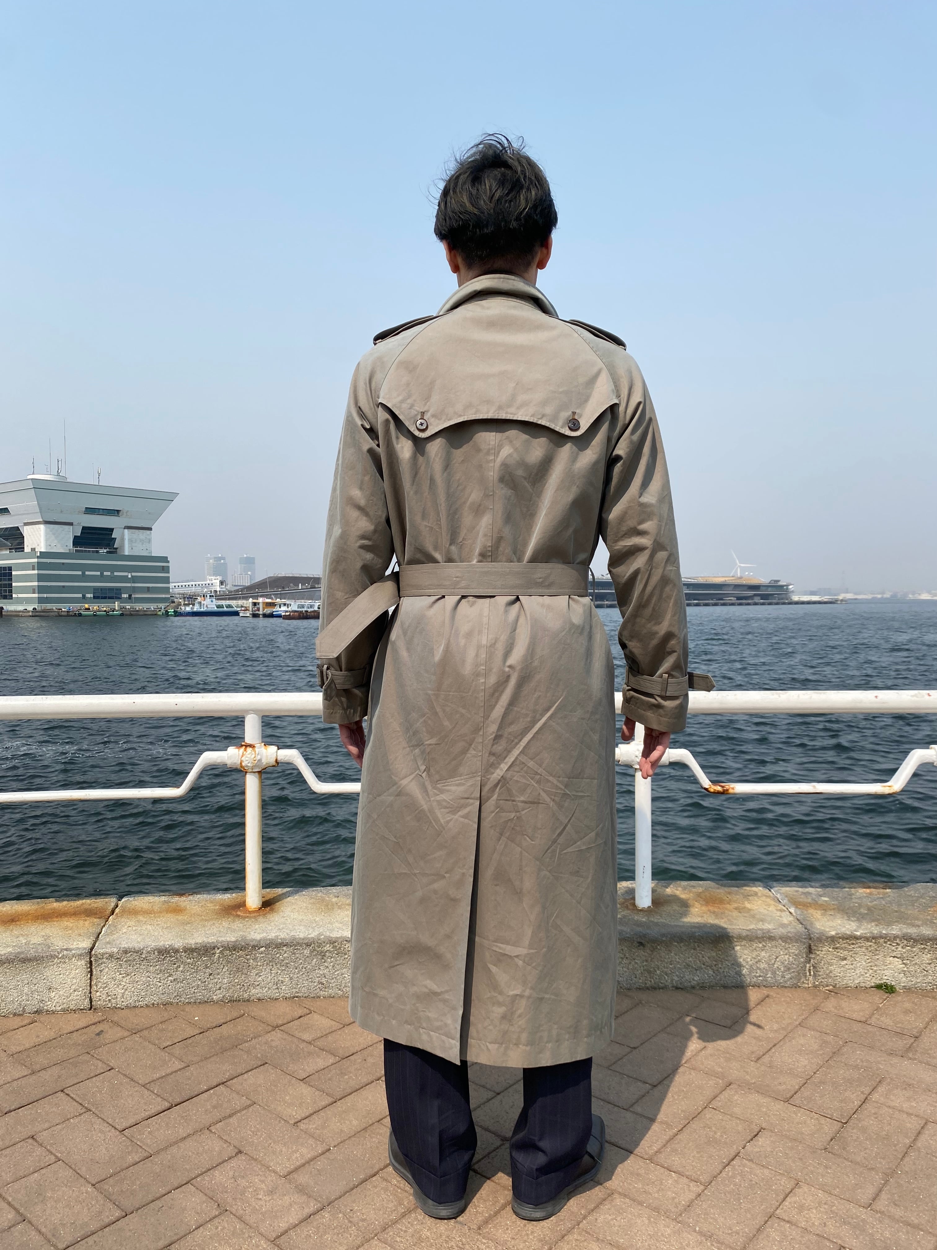 劇中のタカの玉虫カーキグレートレンチコートを当時の型から起こしたロング丈のトレンチコートです。(※来店可能な方は来店の上採寸してのお仕立てをおすすめしています。)